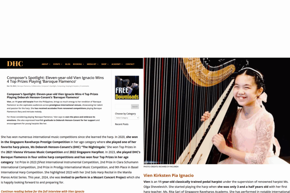 An article about my student Vien Ignacio has been published on the page of renowned contemporary composer Deborah Henson-Conant: https://www.hipharp.com/blog/54513
